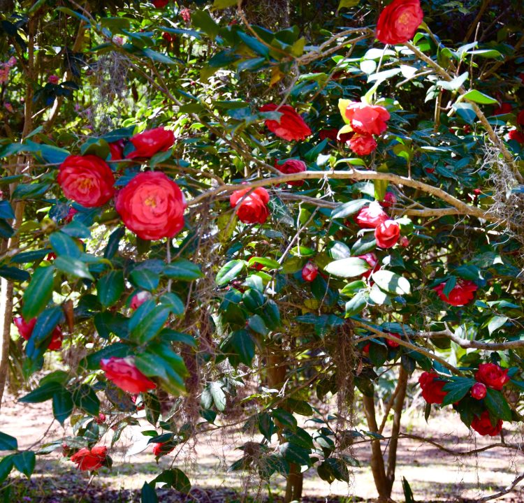 “Splashes of pink and white displayed across the backyard, shaded from tall pines, oaks, elms, and sweet gums. It was officially springtime in the South and the azaleas looked glorious in full bloom.” – In the Square of Crimson Camellias